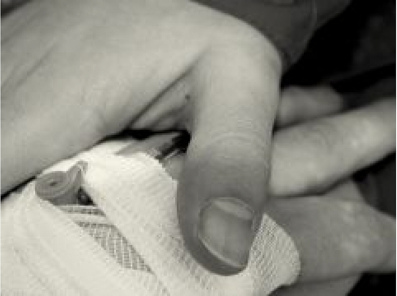 Mediķiem aizdomas, ka vīrietis guvis pirkstu cīpslu bojājumus.