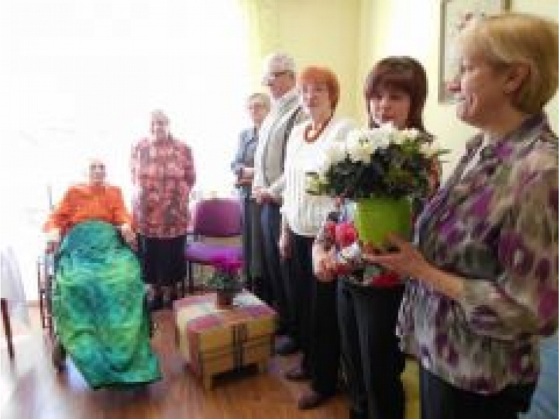 "Arī šodien skanēja daudz mīļu, jauku apsveikuma vārdu Zinaīdai Saulītei. Apsveicēji no sirds sumināja gaviļnieci ar dzejas vārsmām un dziesmām. Daudz baltu dieniņu mūsu novadniecei un bagāta mūža nesējai," norāda Viļakas sociālās aprūpes centra vadītāja.